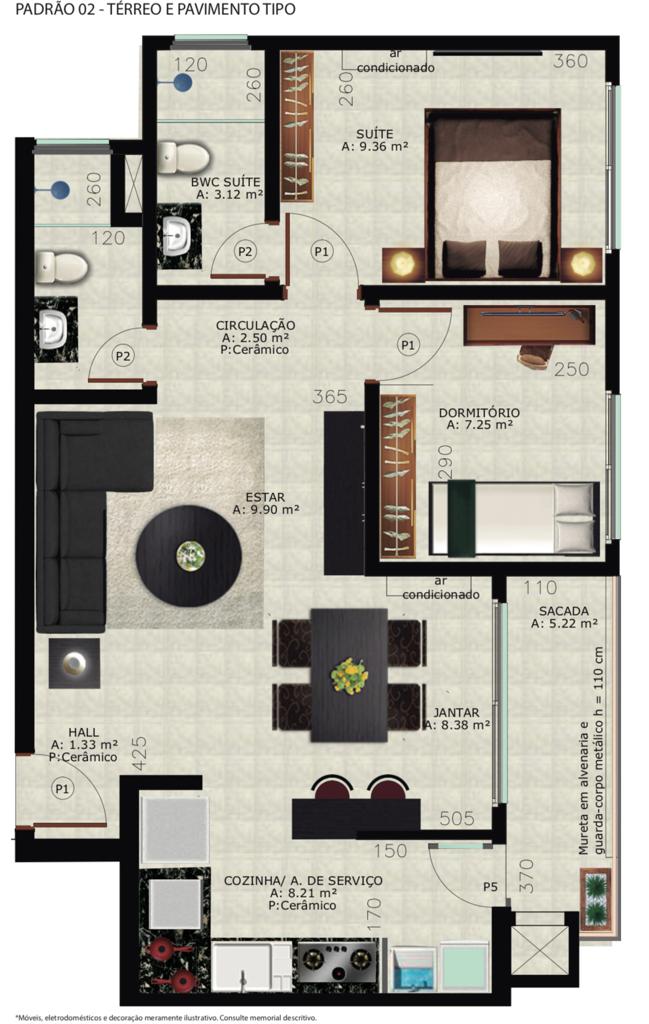Apartamento de 2 quartos com suíte