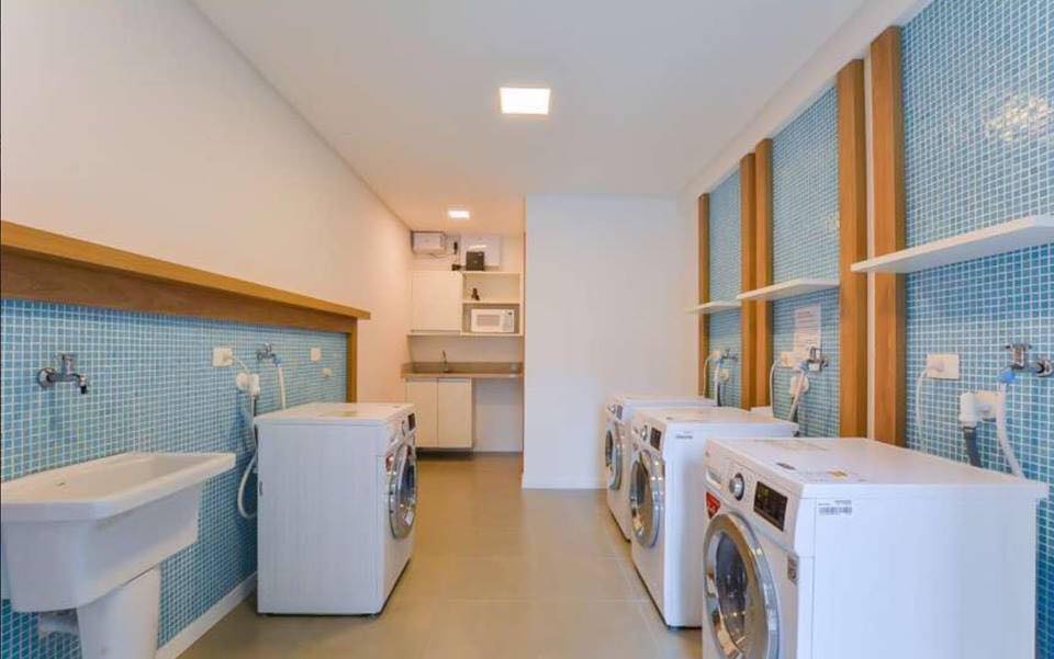 1 Quarto 48m² privativos Entrega com armários planejados, piso laminado, box blindex, espelho, luminária, bancada de granito na cozinha Elevador Hall de entrada Salão de festas Lavanderia coletiva 1 Vaga de garagem